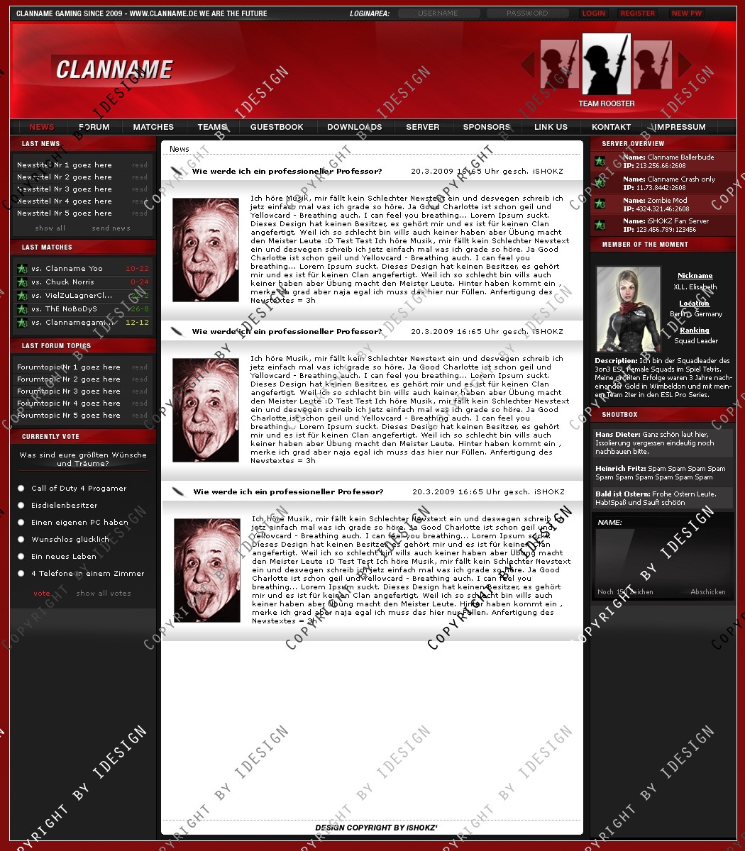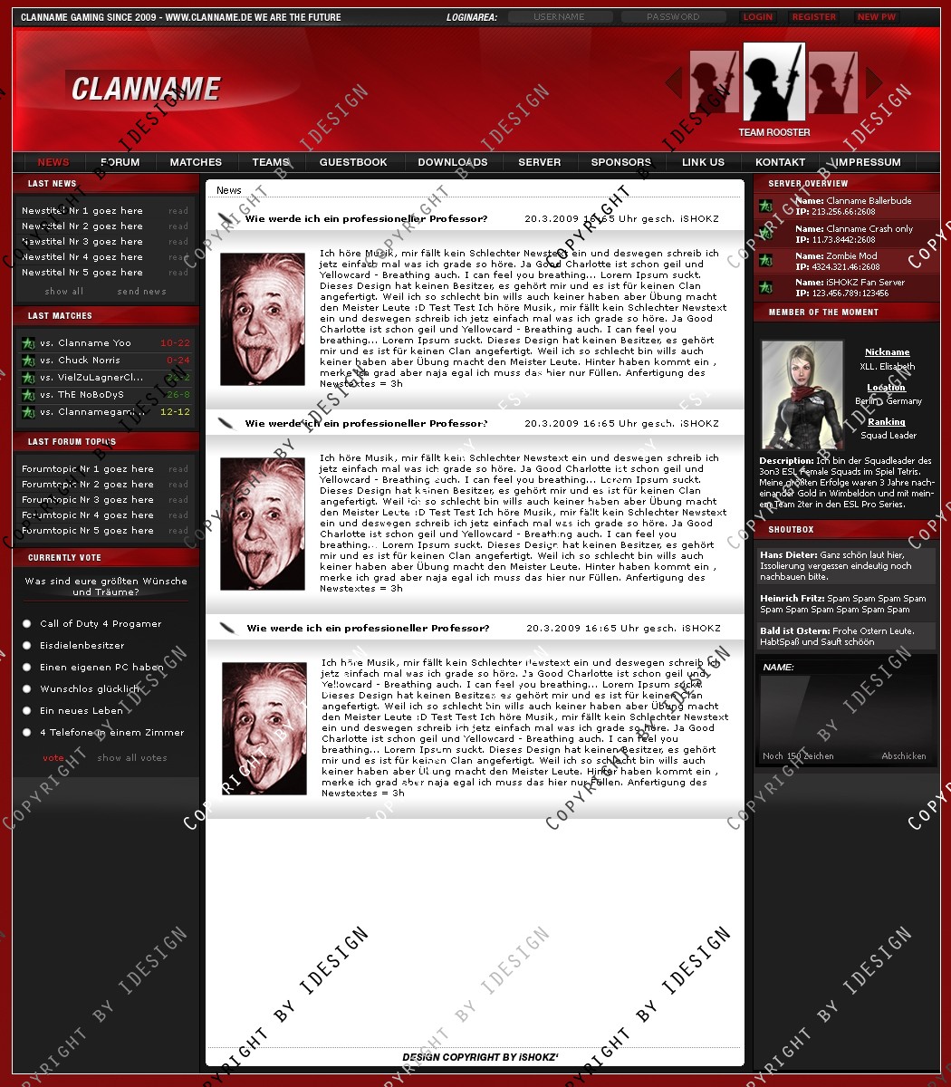 Dies ist ein professionelles Clandesign. Eine übersichtliche und geordnete psd Datei mit allen vorhandenen Ebenen ist vorhanden. Bei weiteren Fragen oder Support wenden sie sich per E-mail an "[email protected]" Dieses Design gibt es auch in Blau, schaut bei meinen Produkten.