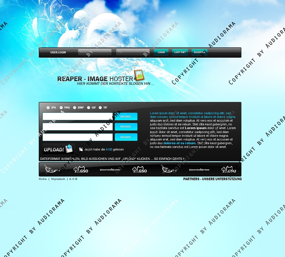 Hinweis: Hierbei handelt es sich nur um das Design, eine Anpassung an ein CMS-System ist nicht im Preis enthalten!