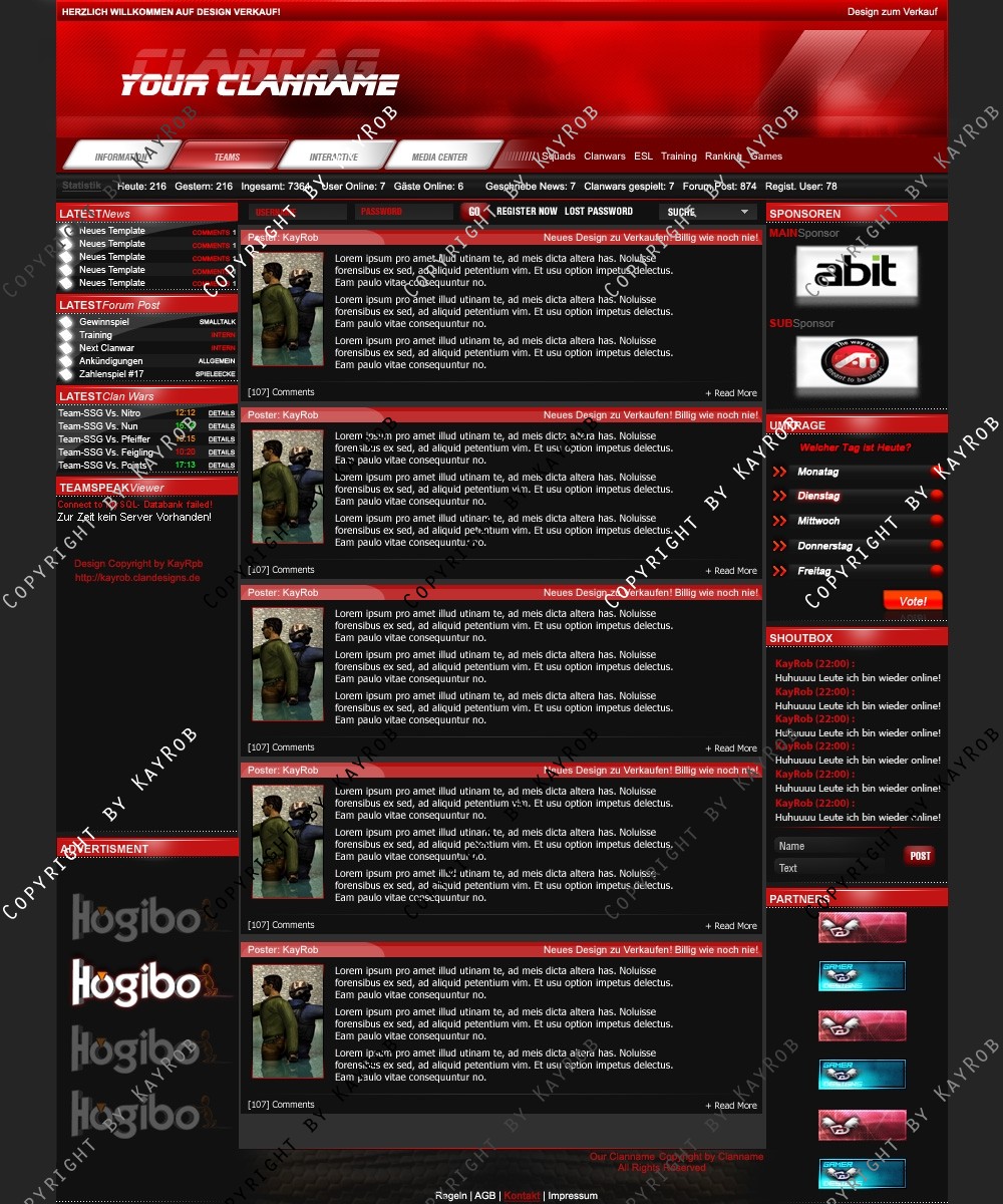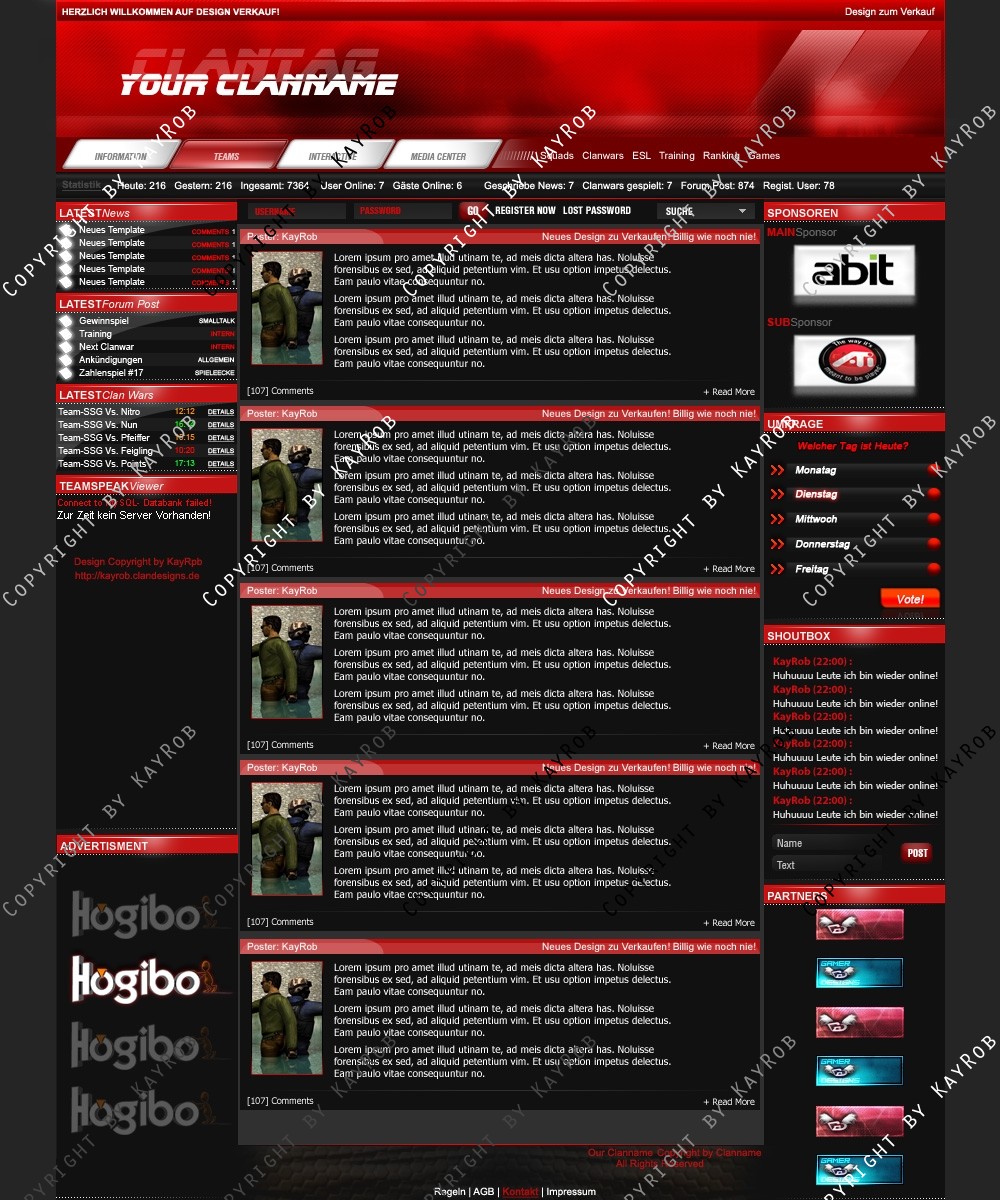 Dieses Clandesign darf OHNE genehmigung von mir Robert Erdmann nicht zum Free Download auf anderen Webadressen angeboten werde. Das weiter verschicken von Design.psd ist auch UNTERSAGT. Sollte es dies der Fall sein, werde ich Rechtliche Schritte einleiten und dies Ahnden!