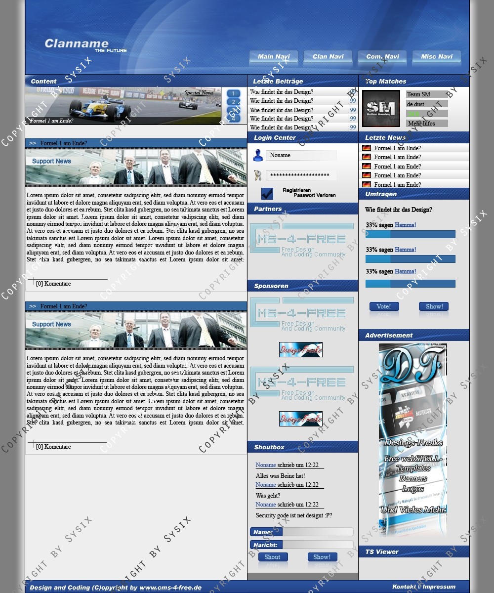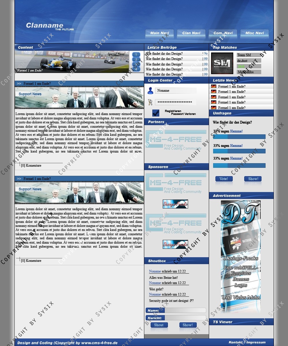 Du hast noch keinen Account auf ClanDesigns.de? Dann kannst du dich hier kostenlos registrieren!