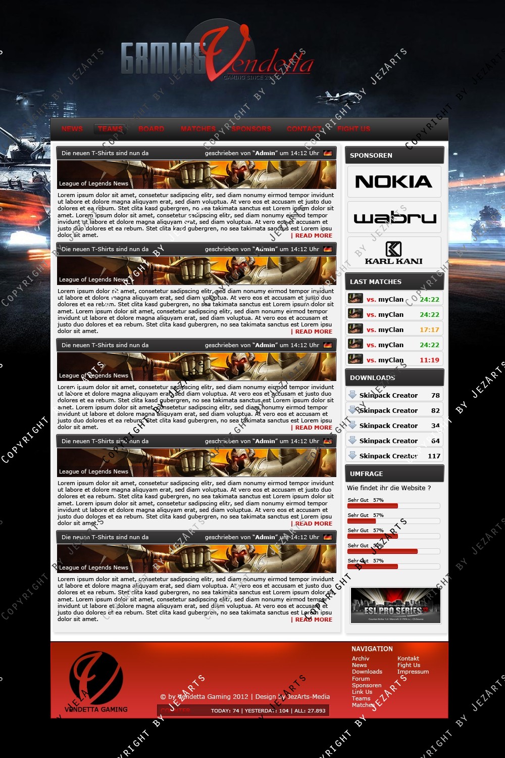 Sie erhalten beim Kauf des Produkts eine .PSD Datei. Das Logo ist als Geschenk mit erhalten und darf frei genutzt werden. Das Design kann an jede Clan CMS angepasst werden wie : -DZCP -Webspell -ilch -und weitere