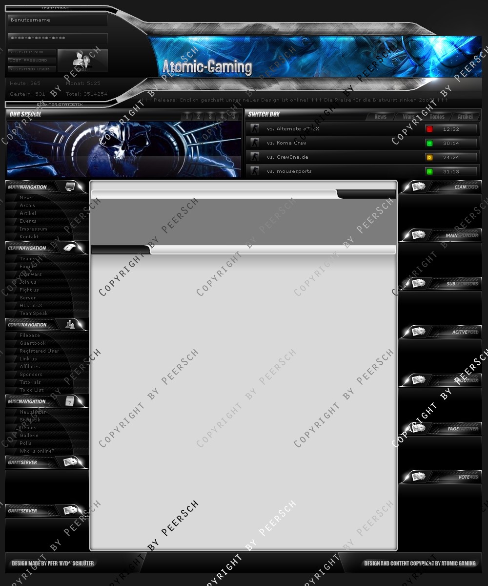Was Sie hier kaufen ist lediglich die PSD Datei, gerne kann ich es Ihnen gegen einen Aufpreis von 13€ an ein CMS Anpassen, zur Auswahl stehen hierbei: webSPELL, Clansphere, Teklab, Devilz und andere CMS auf Anfrage ohne Aufpreis.