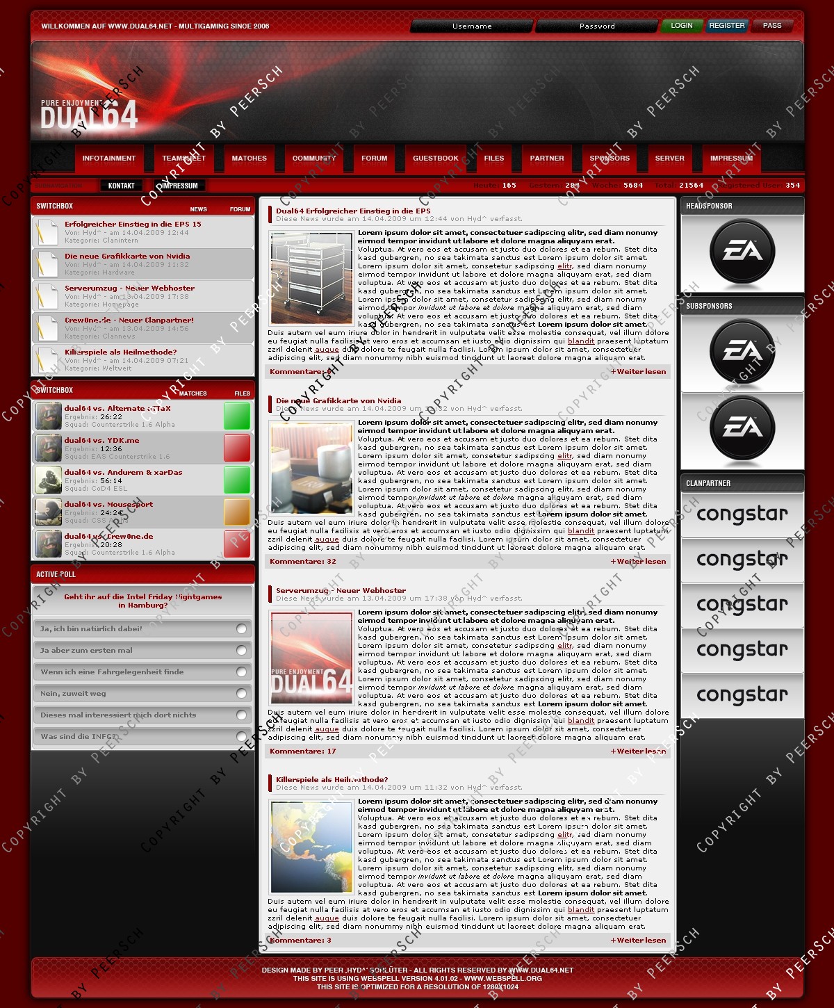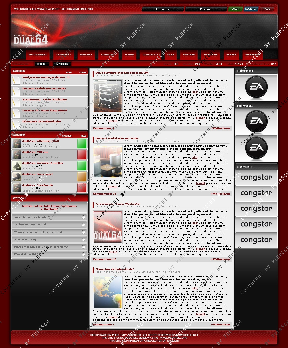 Was Sie hier kaufen ist lediglich die PSD Datei, gerne kann ich es Ihnen gegen einen Aufpreis von 13€ an ein CMS Anpassen, zur Auswahl stehen hierbei: webSPELL, Clansphere, Teklab, Devilz und andere CMS auf Anfrage ohne Aufpreis.