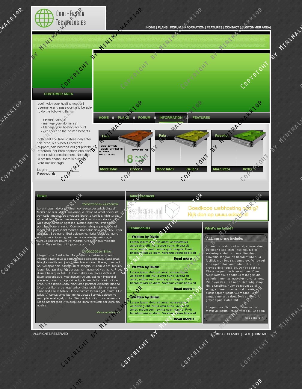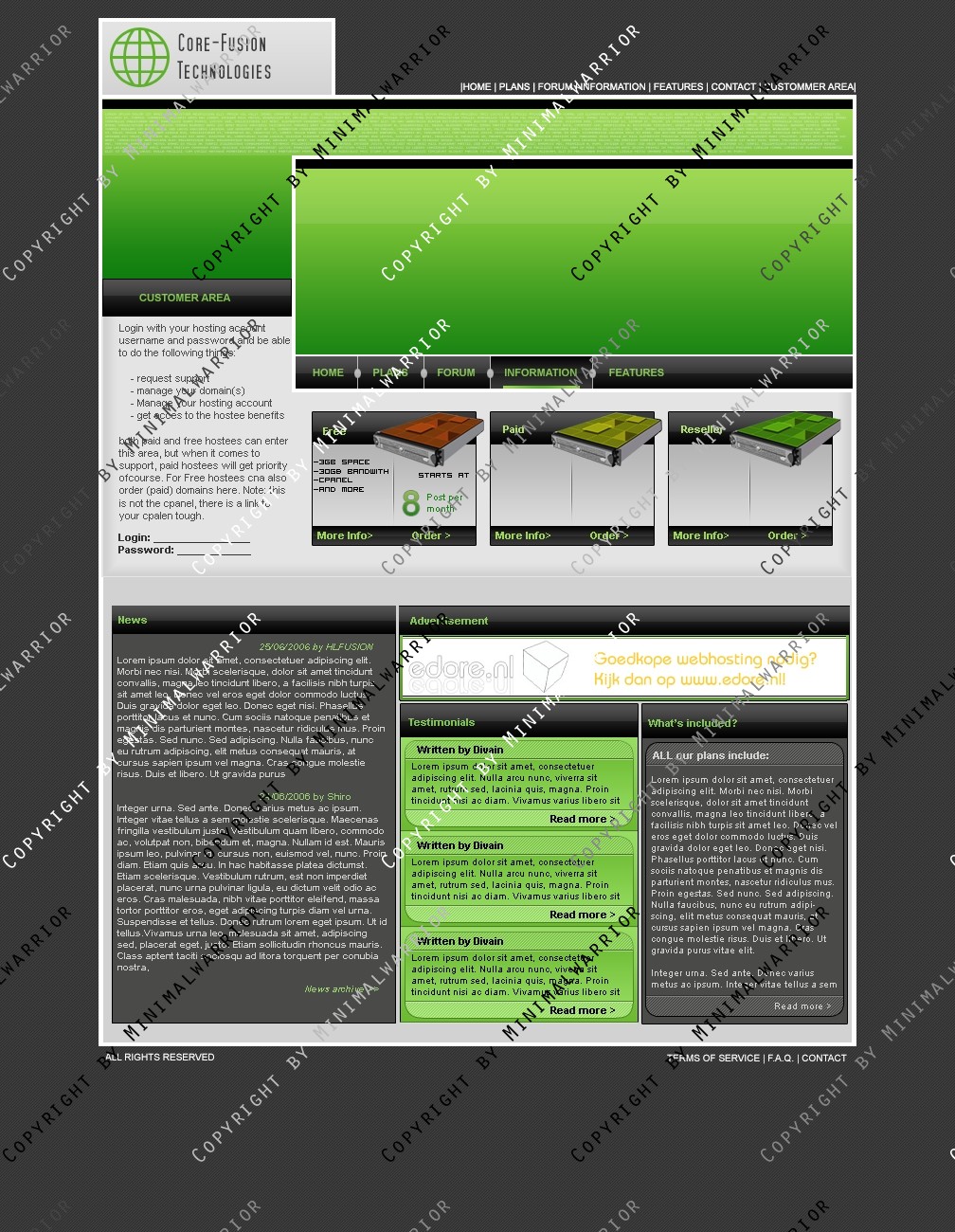 Ich verkaufe folgendes Hosting Layout mehrmals oder exklusiv zu einem für mich angemessenen Preis-/Leistungsverhältnis! Verkauft werden lediglich die .psd-Dateien des jeweiligen Templates, das bedeutet also, dass kein Code bzw. Slicing im Preis inbegriffen ist.