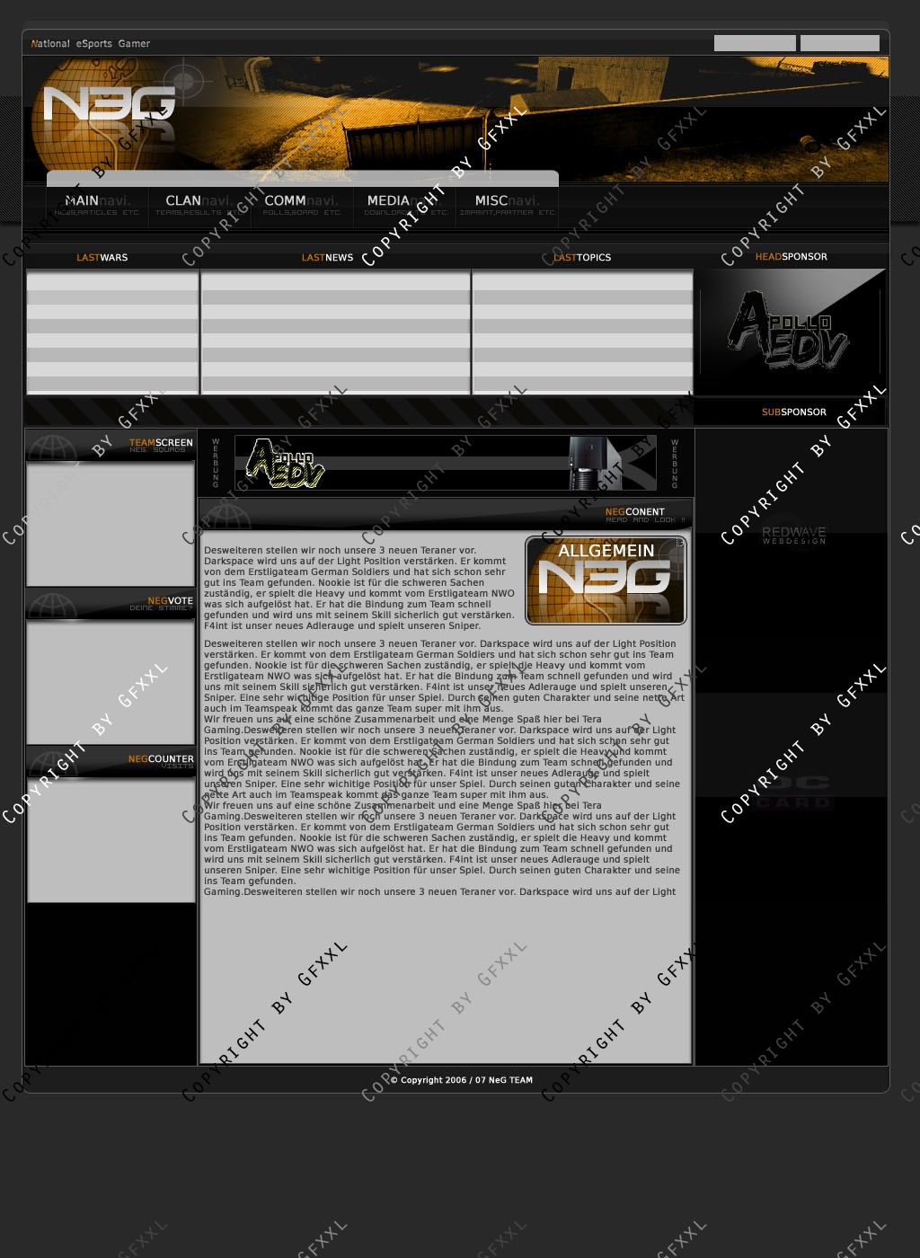 Ich stelle hiermit mein "altes" Clandesign zum Verkauf ein, er war ursprünglich für Natinal-eSports Gamer gedacht, aber aus dem Auftrag is nix geworden... deshalb hier und jetzt zuhaben!