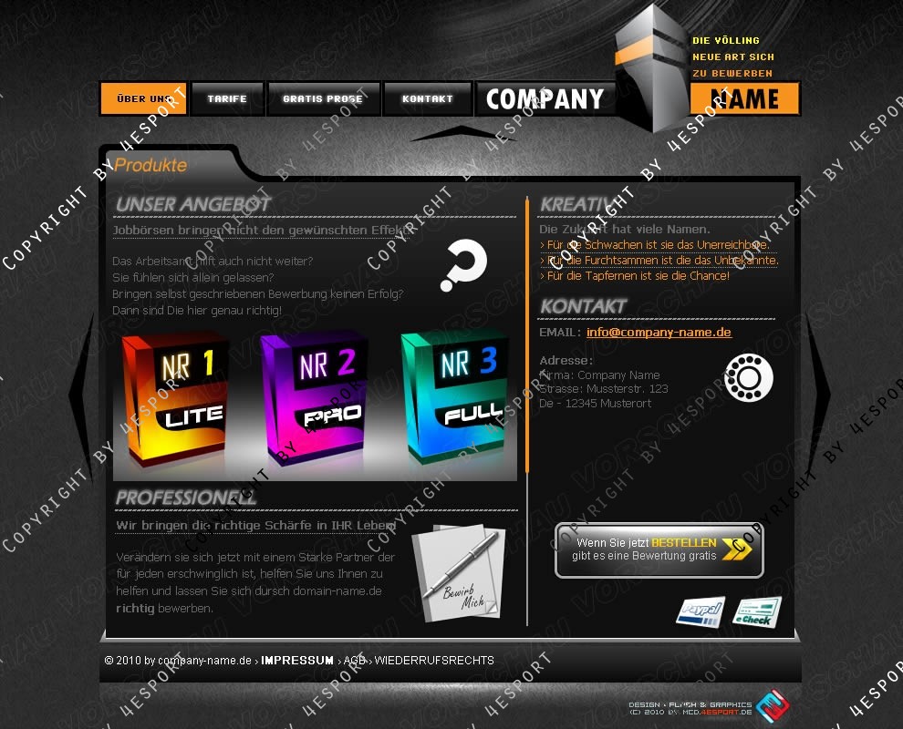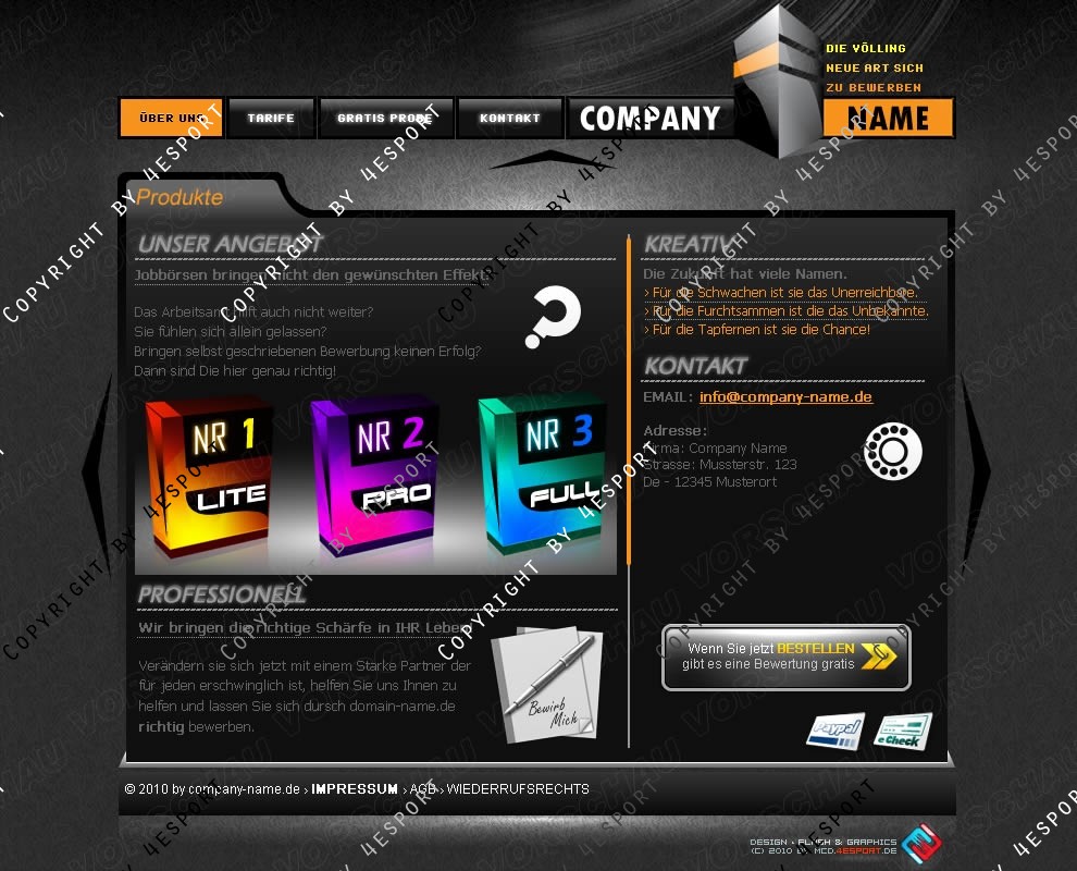 › Exklusiv, Clean & ohne vielle Effekte, Farben Weiss, Schwarz, Grau & Oranje