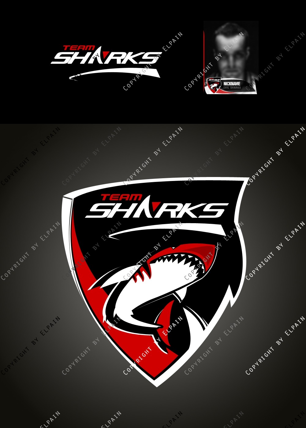 - Die .PSD Datei beinhaltet ALLE Ebenen als Formen, den original Team-Shark Schriftzug und eine kinderleichte Vorlage für den eigenen Clannamen. (Schriftarten liegen bei. S.o.)