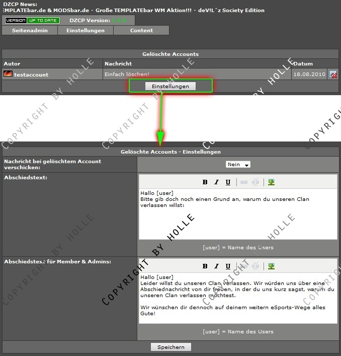 Admins können diese Nachrichten direkt einsehen und können eine Nachricht empfangen, sobald jemand seinen Account gelöscht hat. Außerdem können sie einen eigenen Text eingeben, welcher als Abschiedstext angezeigt wird.