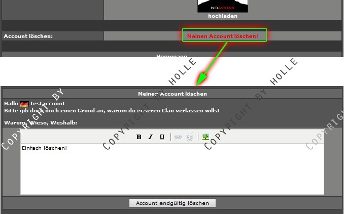 Sollten sich einmal von eurer Seite verabschieden wollen und Ihren Account dementsprechend löschen, gibt Ihnen dieser Mod die Möglichkeit, eine Nachricht zu schreiben, warum sie ihren Account löschen.