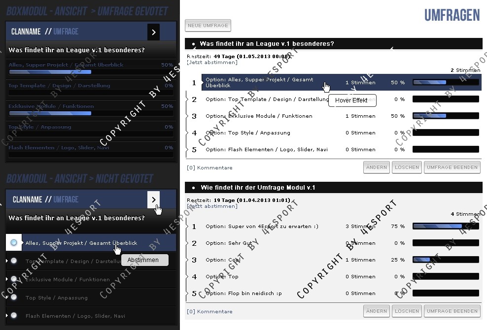 Hier erhalten Sie für ihre Clanhomepage ein Professionelle Poll/Umfrage Modul Erweiterung.
