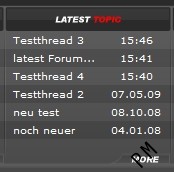 Mit diesem Addon ist es möglich die Uhrzeit der letzten Forenposts angezeigt zu bekommen. In der Infobox zu den letzten Forenposts steht jetzt nicht nur noch der Name der Threads, sondern auch das Datum des letzten Posts.