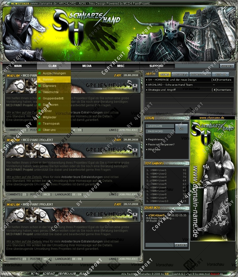 Wir können auch Ihre EXKLUSIVE Farbanpassung anfertigen bzw.: Neue LOGO CLAN NAME, Rahmen, Boxen Hintergründe, Titel-Fonts, Verlauf-Farben, Boxen Anordnung, usw....  das alles ist nur in EXKLUSIVE PREIS enthalten.