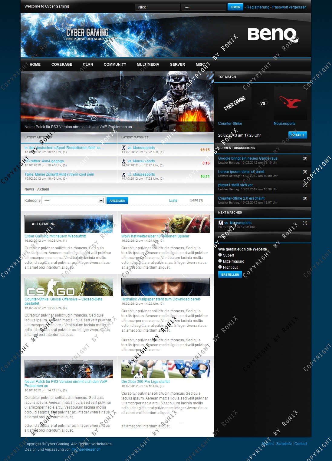 - Photoshop-Vorlagen für Coverages, Header, News, Sponsoren und Top-Match-Logos
