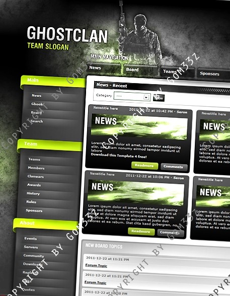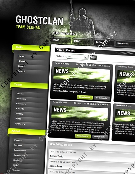 Wir verkaufen ein sehr schönes Ghost Clan Premium Template Design angepasst an die aktuelle ClanSphere Version: 2011.3
