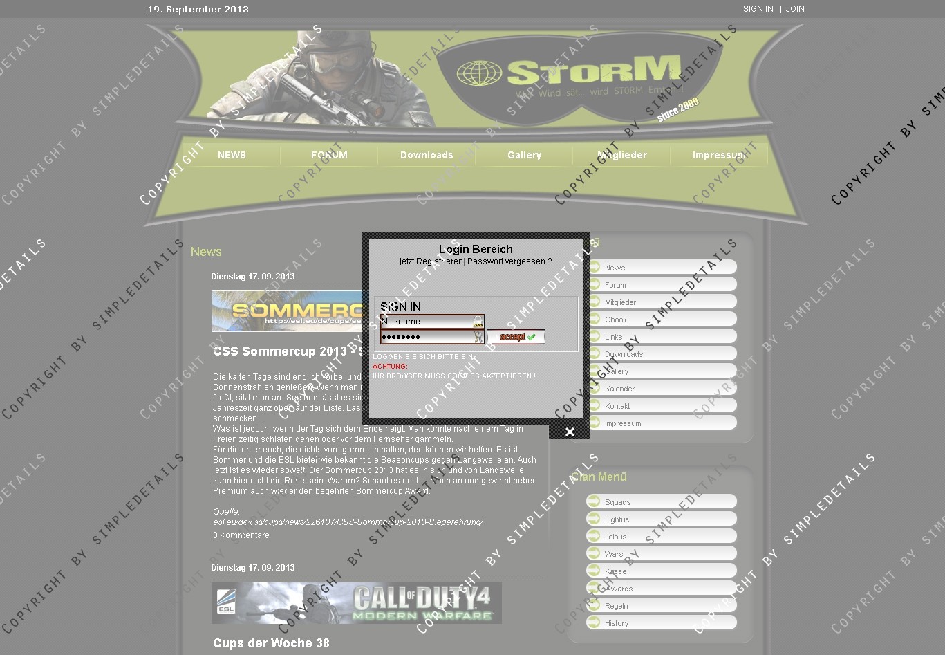 Im Header ist ein Clan-Logo eingebunden, das auch in der .PSD Datei vorhanden ist, und frei angepasst werden kann.