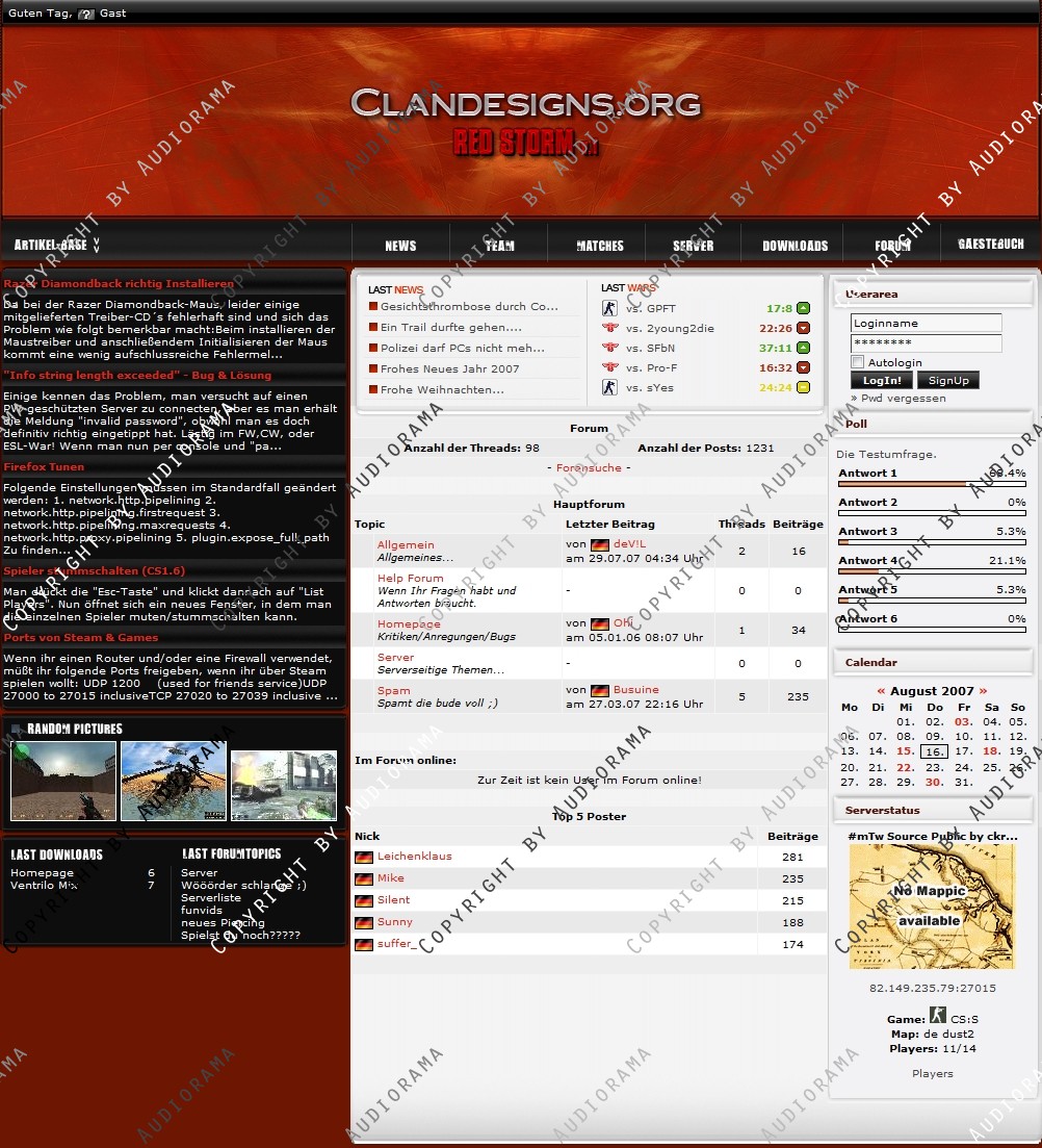 Du hast noch keinen Account auf ClanDesigns.de? Dann kannst du dich hier kostenlos registrieren!