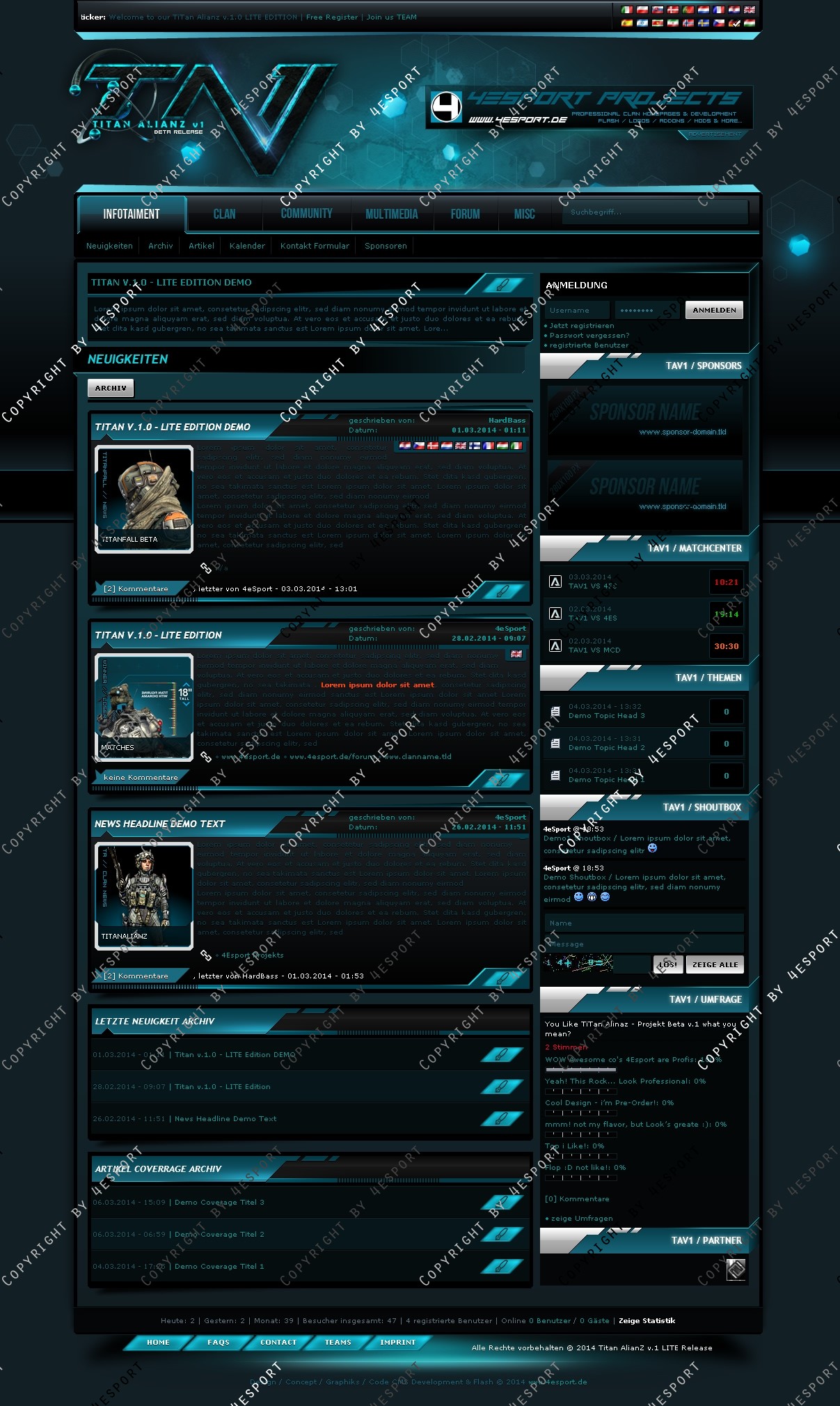 Sie erhalten hier eine Komplette CLAN Template an WEBSPELL 4.2.3a CLAN EDITION an TITANFALL Game angepasst.
