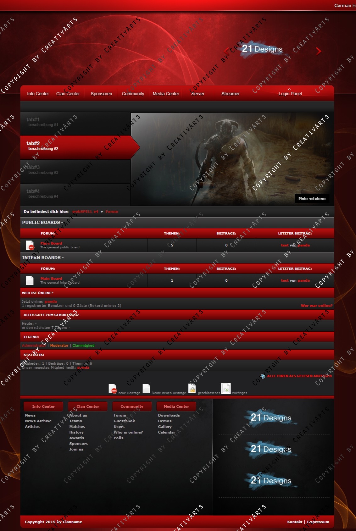 • Sie erhalten hier einem Professionellen Design, Programmiert, Implementiert und Vollständig angepasst an webSPELL CMS ab Version: 4.2.4 +