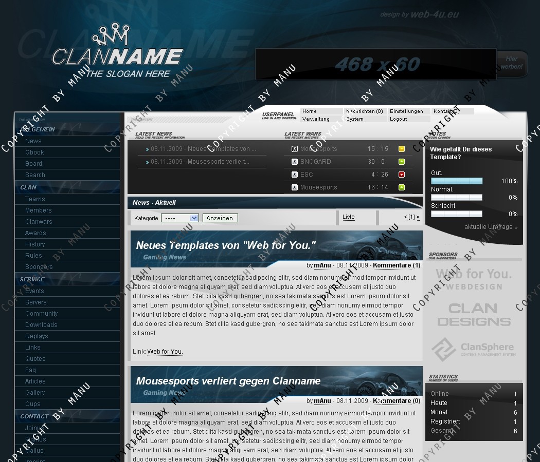 Pacific ist ein neues Template von Web for You. aus der "Feder" von Manuel Wendt. Es passt zu allen Themen, wie z.B. Clans, Firmen, Schulklassen und anderen Communities.